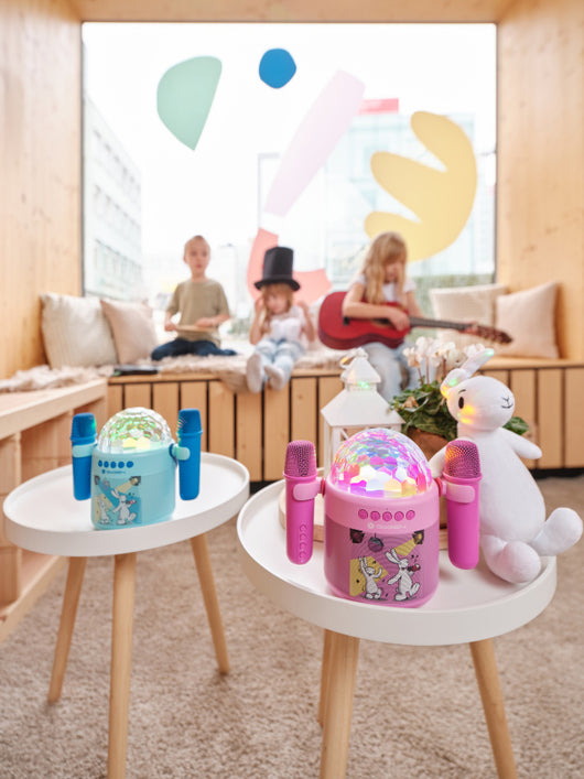A gyerek hangszóró minden ünnep elengedhetetlen részévé válik. A legfontosabb és egyben a legnépszerűbb funkció kétségtelenül a karaoke. Ennek köszönhetően a kicsik (de még a nagyok is) különféle előadók dalait énekelhetik. A hangszóró felszereltségéhez két független vezeték nélküli mikrofon tartozik, így a gyerekek bátran előadhatnak egy duettet! A hanghatások révén ráadásul megváltoztathatják a hangjukat, és igazán szórakoztató légkört teremthetnek. Bob és Bobek, a rajzfilből ismert nyulak, még egy különlegességel lepik meg a gyerekeket: a hangszóróba beépített disco gömb segítségével a fényhatások valódi táncparketté varázsolják a gyerekszobát. Csak annyit kell tennie, hogy elindítja a zenét, és kezdődhet a show!